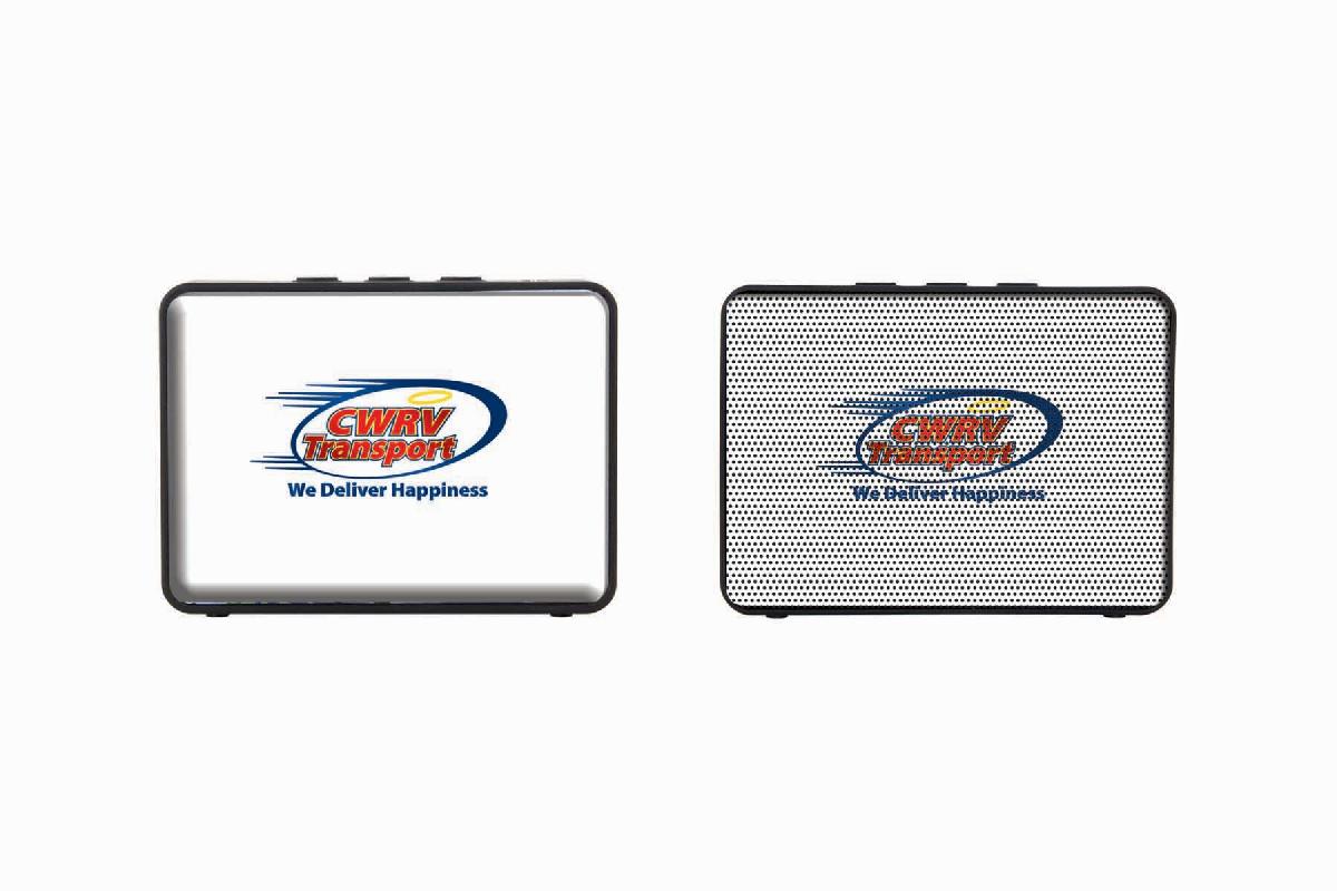Looking for a portable Bluetooth speaker that gets noticed? Then your search stops here! With incredible sound thanks to its built-in subwoofer, the pocket-sized Boxanne™ carries an enormous punch. Use the included looping strap to attach the Boxanne™ to any bike, backpack, or bag and play the soundtrack to your next adventure. Dual-sided decor makes for double the fun and its built-in microphone makes sure your calls are just a button away. Bluetooth capability up to 33 ft 3 watt Bluetooth speaker On speaker controls Built-in microphone for conference calls Up to 5 hours of audio playtime Fits in your pocket for easy portability Comes with a wrist strap that can loop around bikes, backpacks, etc. Boxanne™ Bluetooth Speaker You don't have to stop your music tonight! DESCRIPTION PRICING TOOLS + SPECS 360 PACKAGING Looking for a portable Bluetooth speaker that gets noticed? Then your search stops here! With incredible sound thanks to its built-in subwoofer, the pocket-sized Boxanne packs an enormous punch. Use the included looping strap to attach the Boxanne to any bike, backpack, or bag and play the soundtrack to your next adventure. Dual-sided, full-color printing gives any brand double the exposure while its built-in microphone makes sure your calls are just a button away. Want to make sure your brand leaves a lasting impression? Customize the greeting at 100 pieces Bluetooth capability up to 33 ft3W Bluetooth speakerOn speaker controlsUp to 5 hrs of audio playtimeBuilt-in microphoneFits in your pocketComes with a wrist strap that can loop around bikes, backpacks, etc.Customize the greeting when Boxanne turns on at 100 pieces (via overseas)
