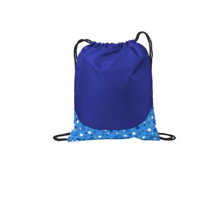 Colorblocking and vibrant prints give our budget-friendly cinch pack instant appeal for a variety of events and promotions. Fully printed on the back and bottom front with a large unprinted decoration area on the front. Can be decorated on all areas of bag. | 210 denier polyester Black drawcord closure allows this bag to double as a backpack Bottom grommets for strength Dimensions: 17.75'h x 14.5'w Note: Bags not intended for use by children 12 and under. Includes a California Prop 65 and social responsibility hangtag .