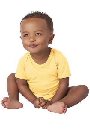 Overlapping shoulders make this jersey 1-piece a breeze to take on or off. 4.1-ounce 100% ring spun combed cotton Rib knit lap shoulders cuffs and leg openings 3-snap bottom closure