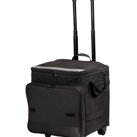 With a 48-can capacity you'll be the hit of the tailgating party when you roll up with this durable cooler. Collapsible design makes for easy storage. 600 denier polyester 420 dobby polyester Web top and side handles Zippered opening Easy-to-clean heat-sealed water resistant lining Removable bottom board Zippered front pocket One-hand push button extension handle; extends to 21 Smooth durable inline skate wheels Dimensions: 14 h x 14 w x 11 d (expanded); 14 h x 14 w x 7 d (collapsed); Approx. 2 156 cubic inches (expanded)Note: Bags not intended for use by children 12 and under. Includes a California Prop 65 and social responsibility hangtag.