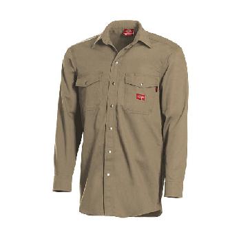 Arc Rating: 8.6 CAT 2 7 oz. Amtex Blend US Standards: NFPA 2112, NFPA 70E, ASTM F1506 Canadian Standards: ASTM F1506, CSA Z462, CGSB 155.20 Workrite part # 282AE70KH is now VF lot # 2827KH Doghouse sleeve plackets Snap front closure Generous shoulder fit and sleeve length Two chest pockets with snap flap closures